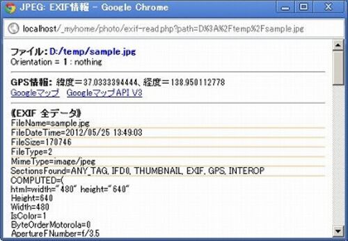 MyHome Portal Ver.4.22をリリースしました。 http://ok2nd.web.fc2.com/download.html アルバムの「EXIF情報」に、GPS緯度・経度追加。EXIFデータにGPSデータが含まれている場合、緯度、経度を表示し、Googleマップとツール「Google Maps API V3版」リンク…